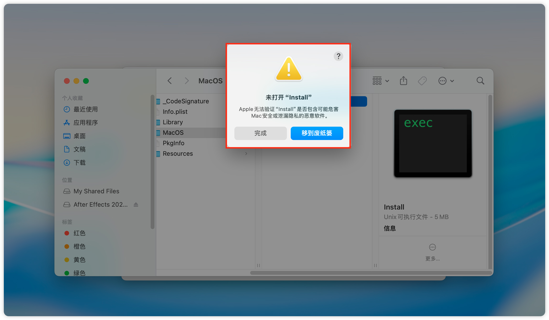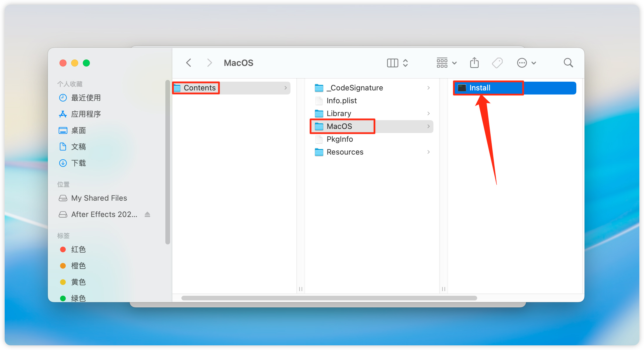 8、路径:Contents → MacOS → Install,双击打开。