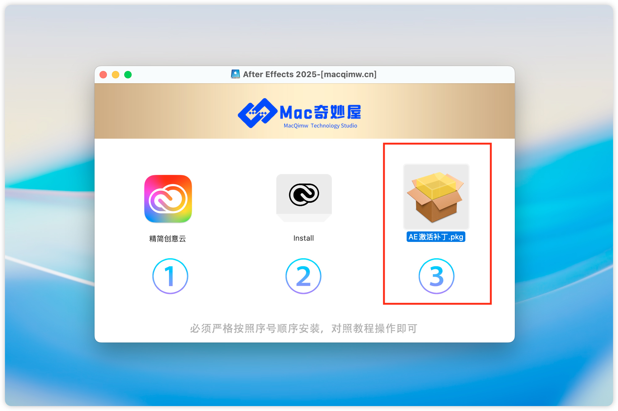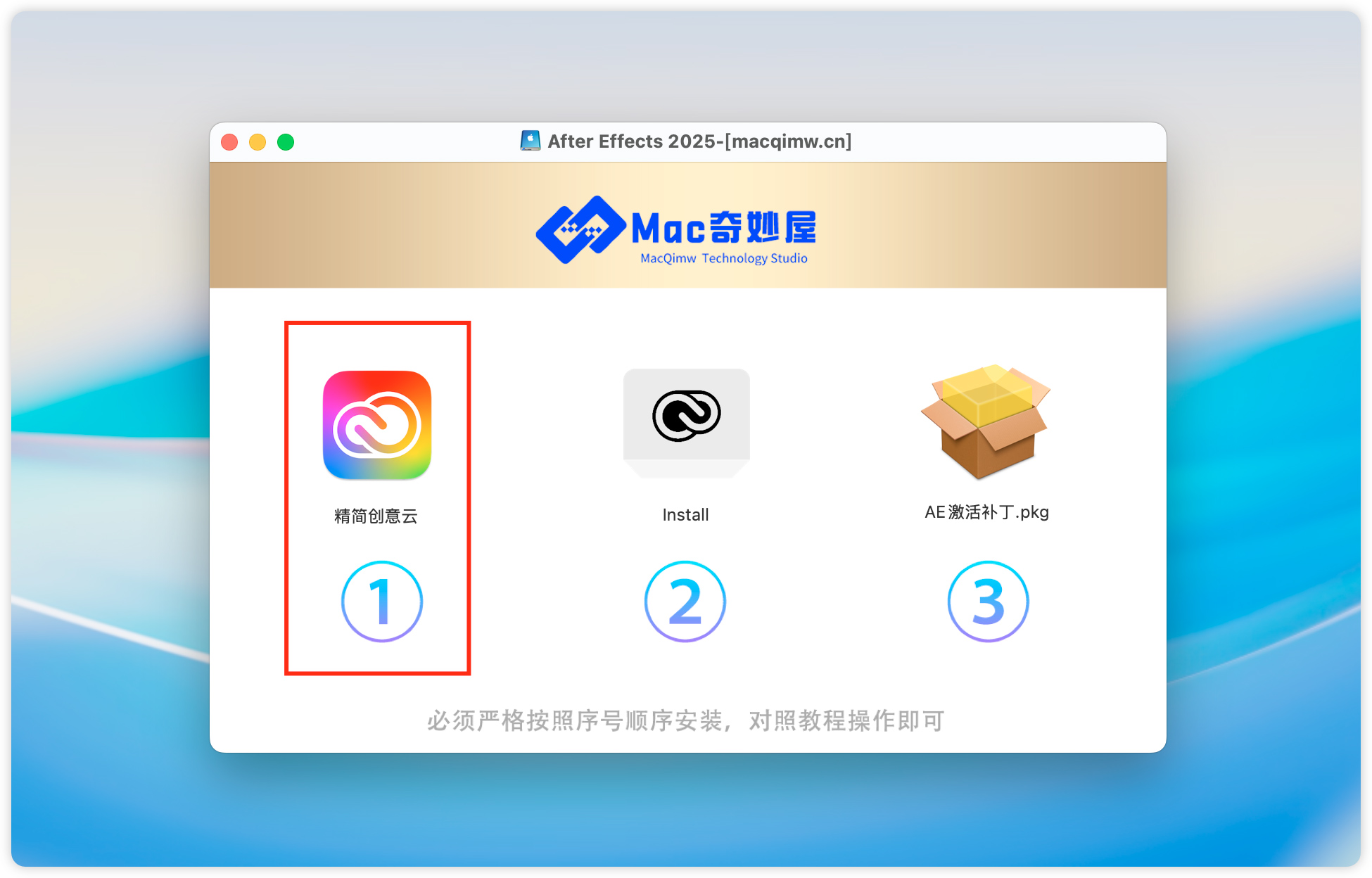 安装教程:(“注意”:安装 AE2025 需要先卸载干净电脑里的 旧版AE!!)