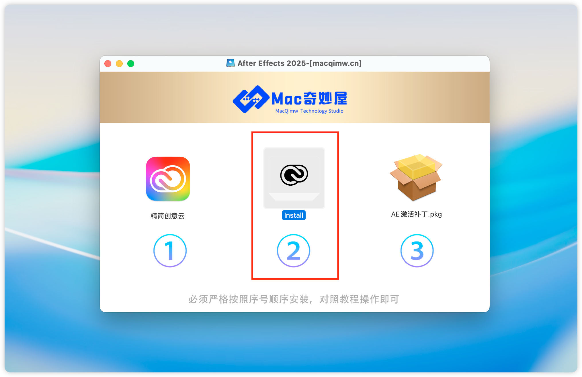 5、返回安装包,选择第二步,开始安装 After Effects 2025。