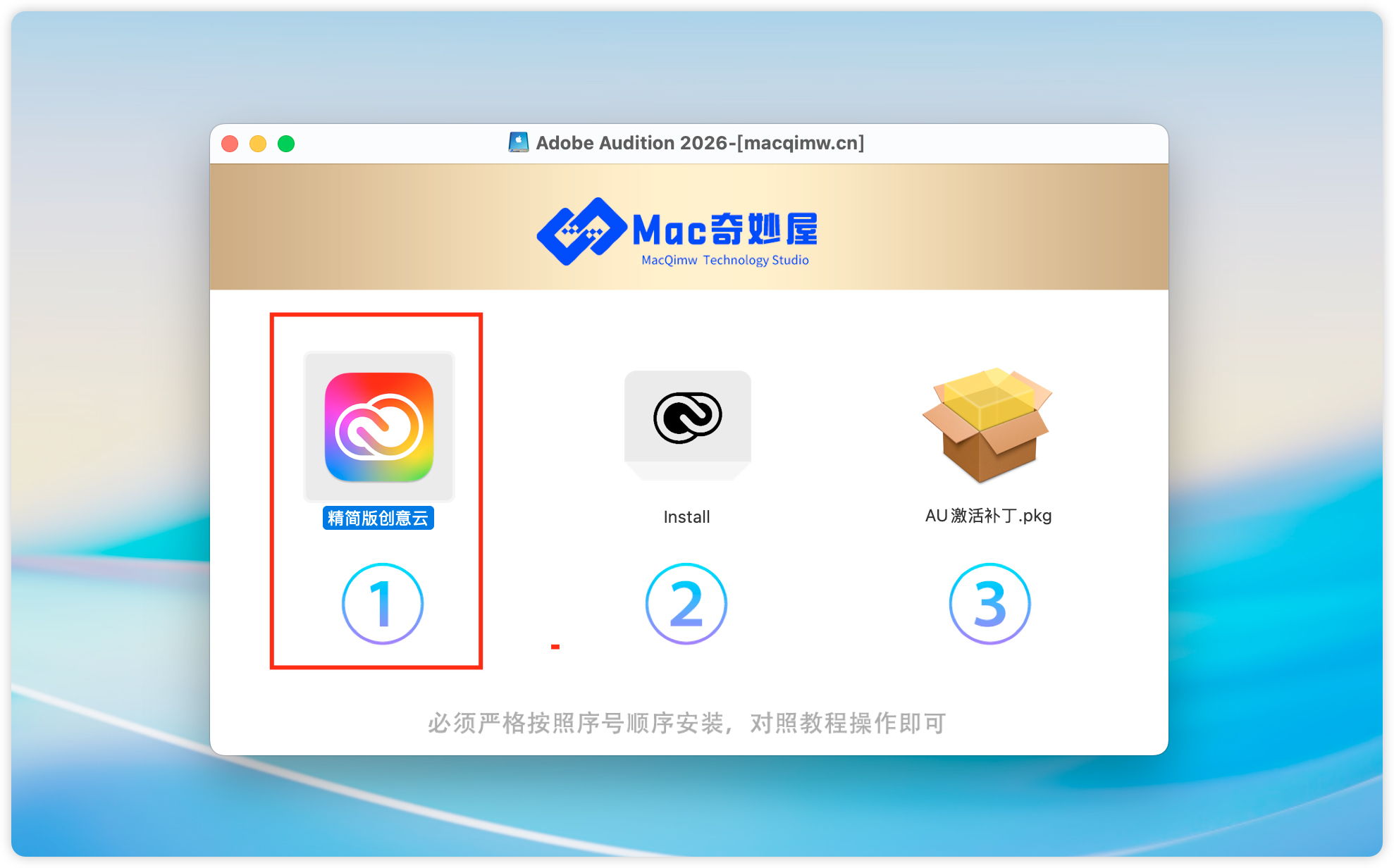 安装教程:(“注意”:安装 AU2026 需要先卸载干净电脑里的 旧版AU!!)