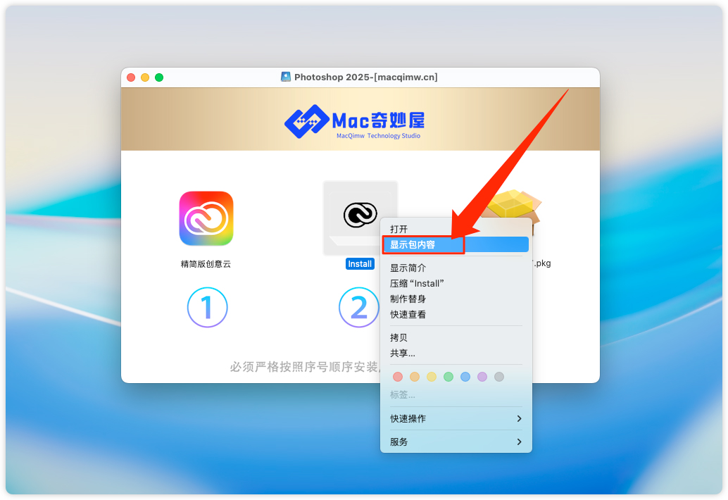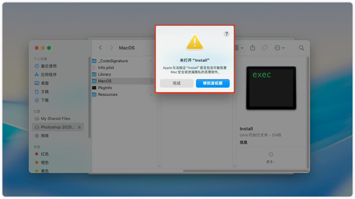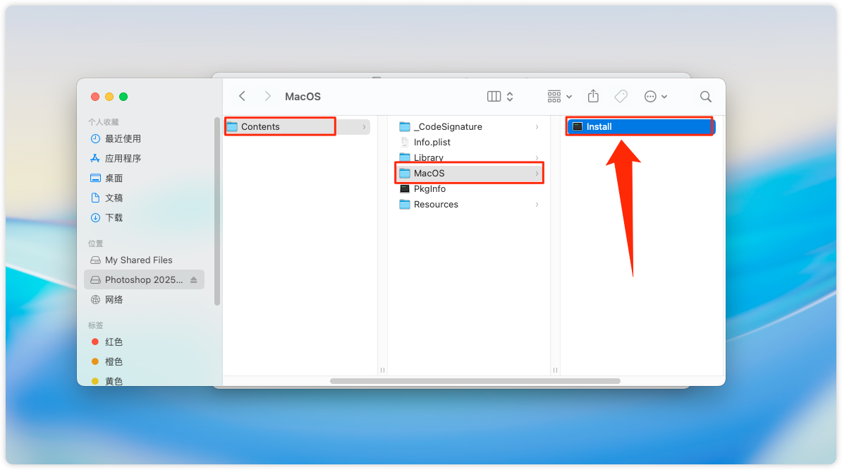 8、路径:Contents → MacOS → Install,双击打开。