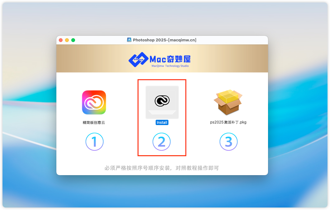 5、返回安装包,选择第二步,开始安装Photoshop2025。