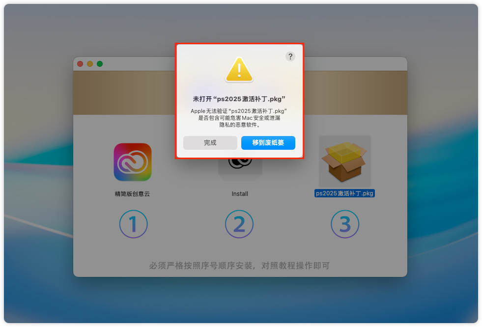 6、如打开时提示未能打开,按照请严格按照教程操作;如无报错跳过此步骤即可。 (在macOS新系统版本上会被拦截)