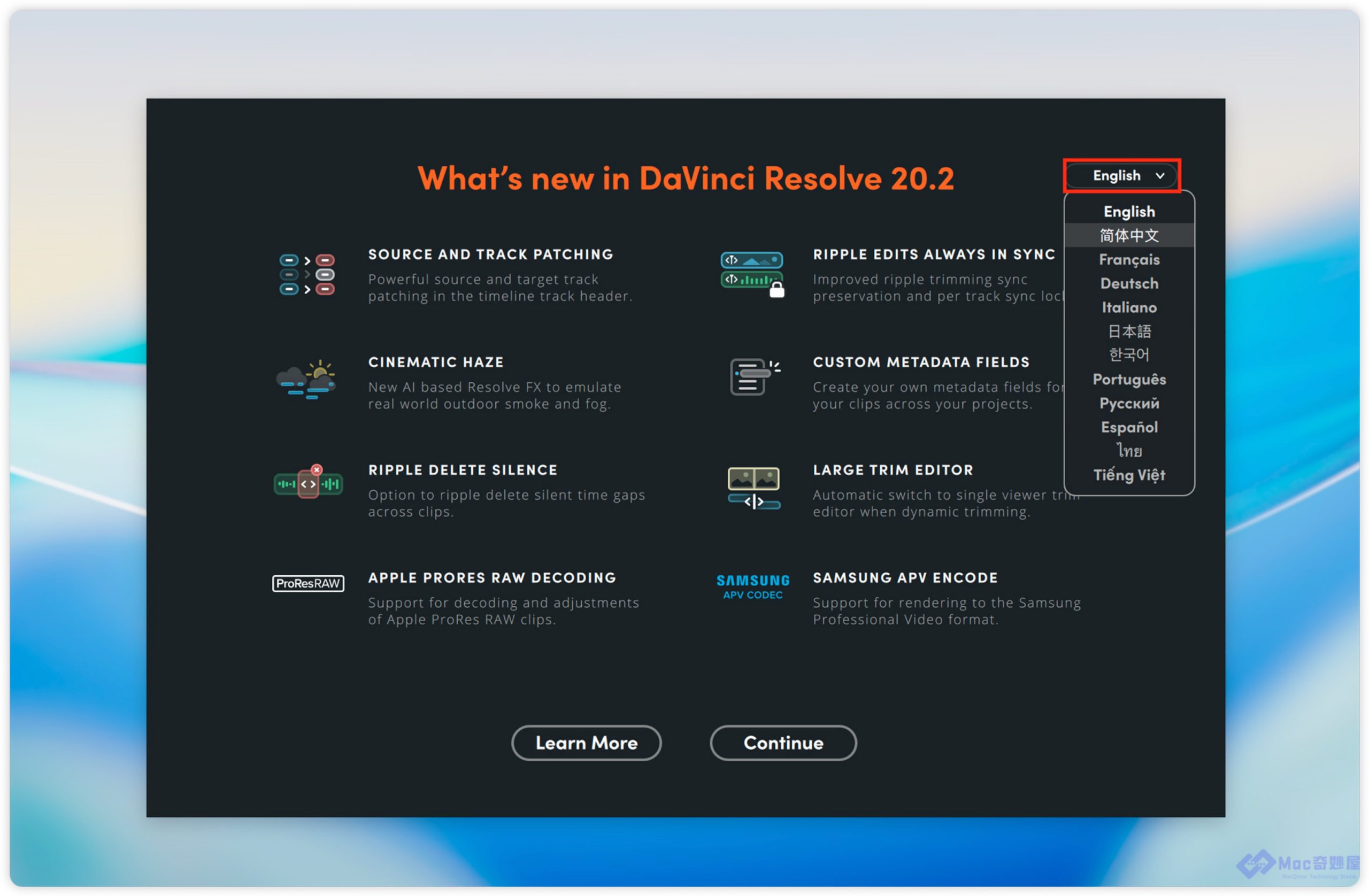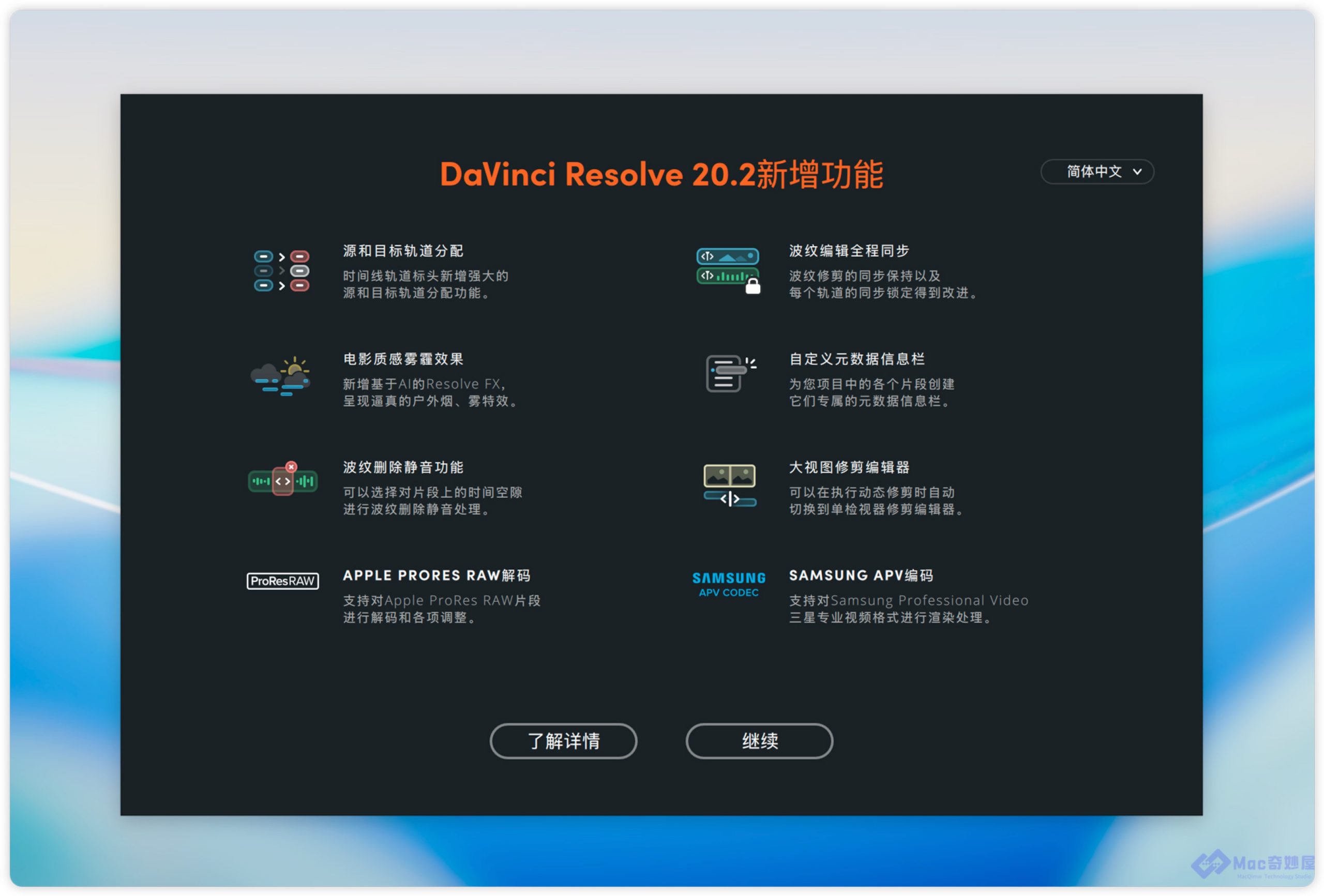- 达芬奇20系统最低要求:≥ macOS Sonoma 14 以上,系统不符请下载旧版18-19安装
