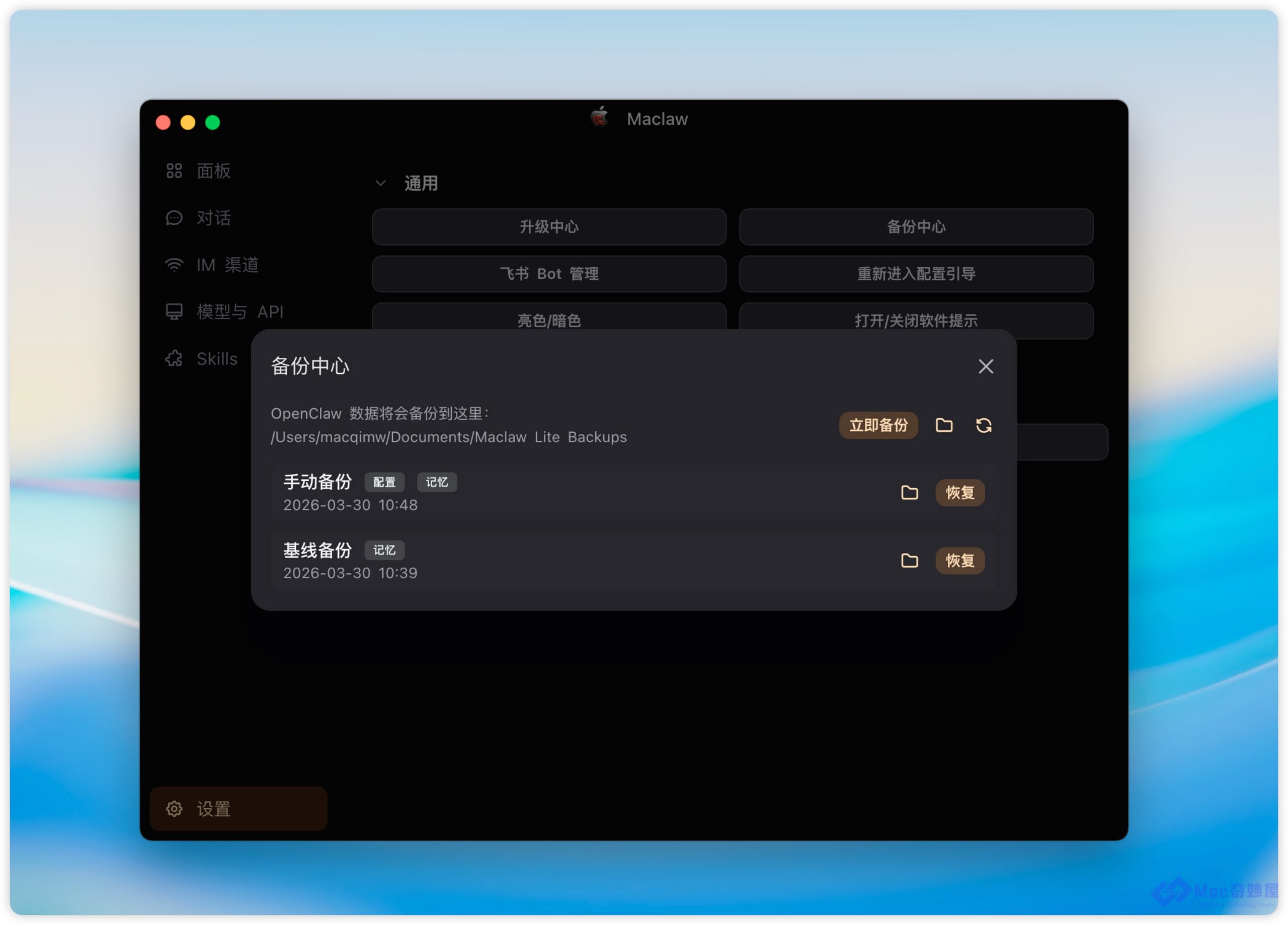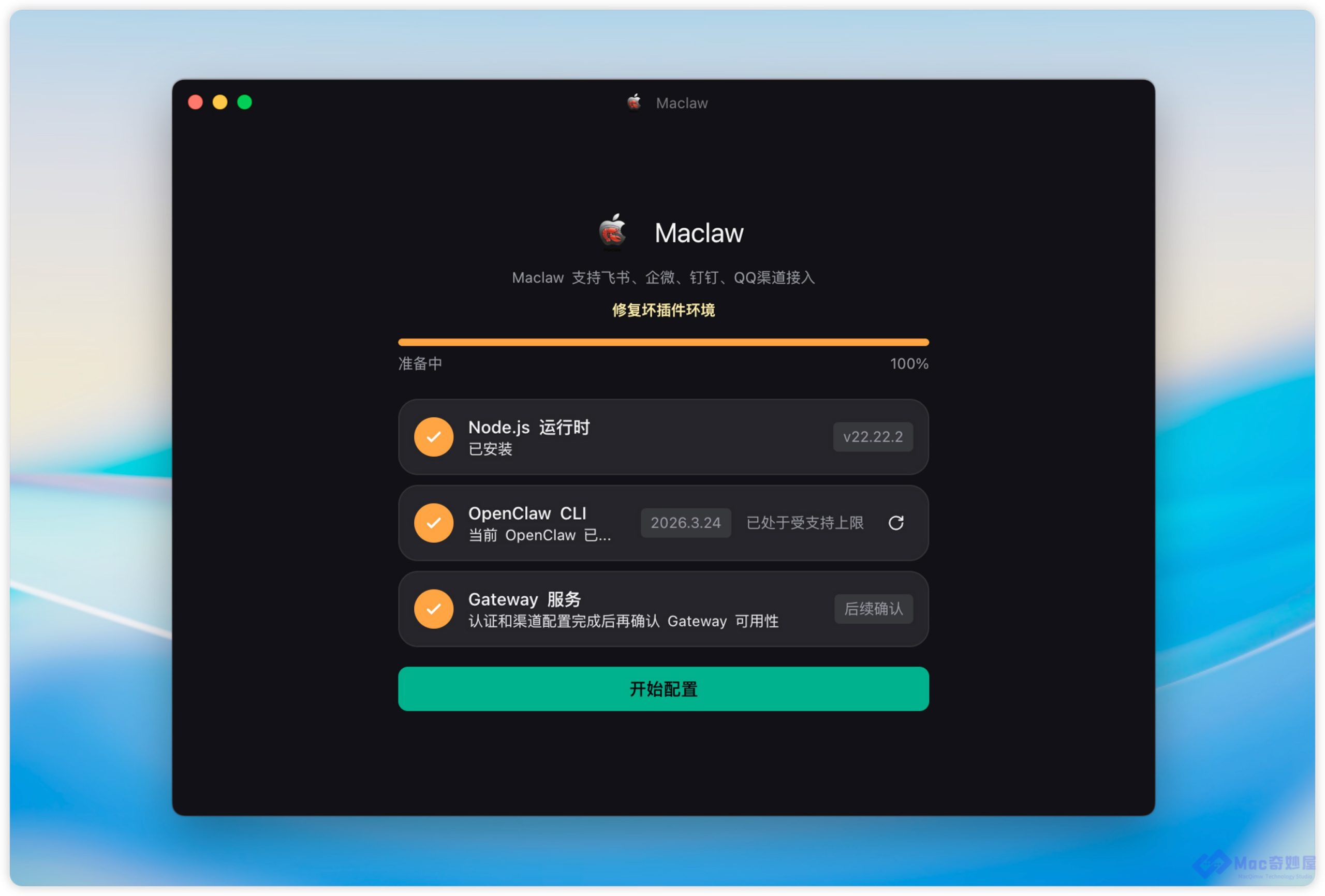 • Maclaw 一键安装部署的 OpenClaw版本为 2026.3.24  (构建时的最新版)。