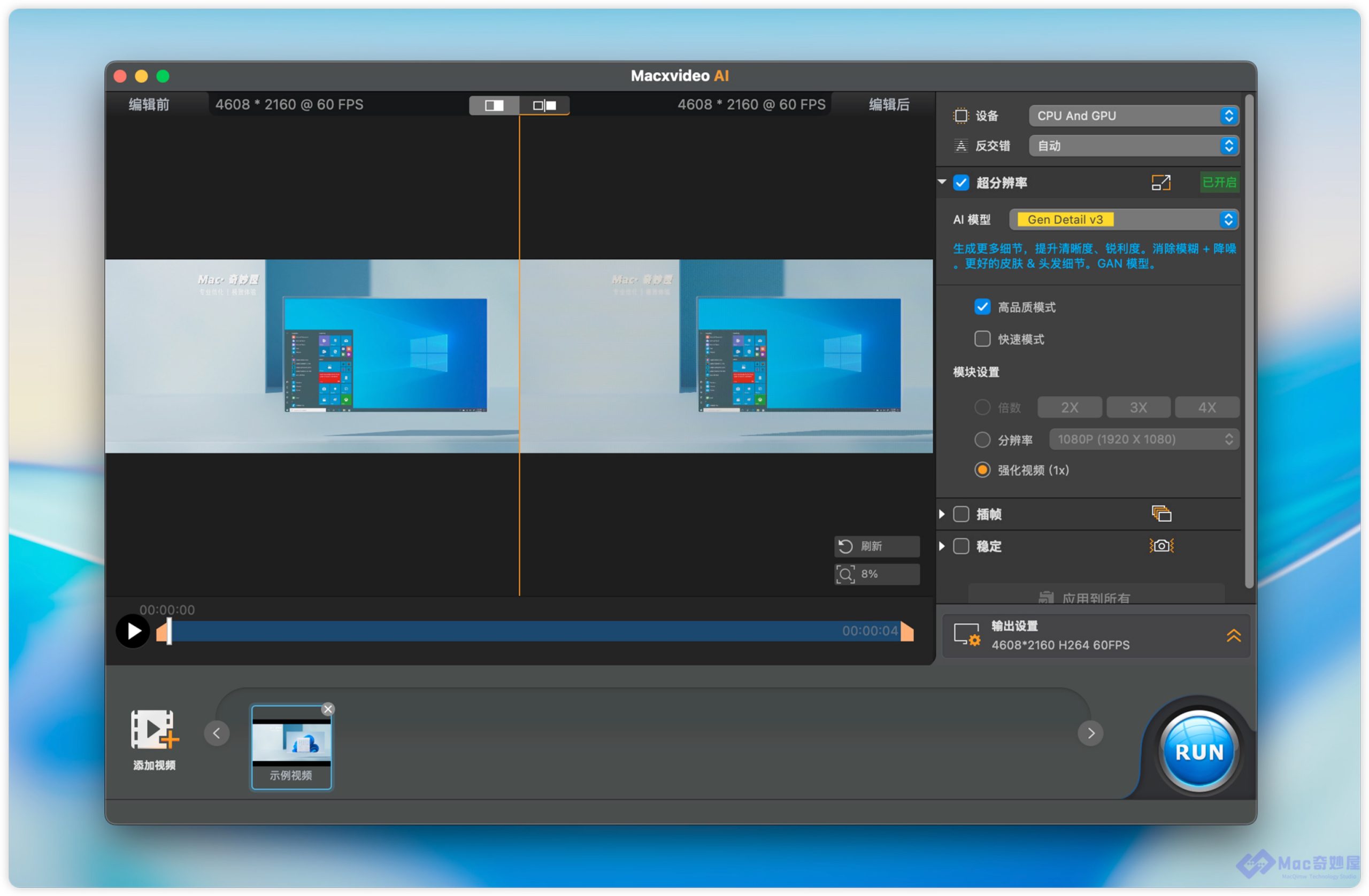 Macxvideo AI 堪称 Mac 用户的视频处理宝藏!它是集增强、转换、压缩、录制与编辑于一体的一站式视频套件。借助新一代 AI 技术,超分辨率功能能将素材智能放大 4 倍,4K 高清画质下仍能消除噪点模糊,保留细节,带来沉浸式视觉体验。