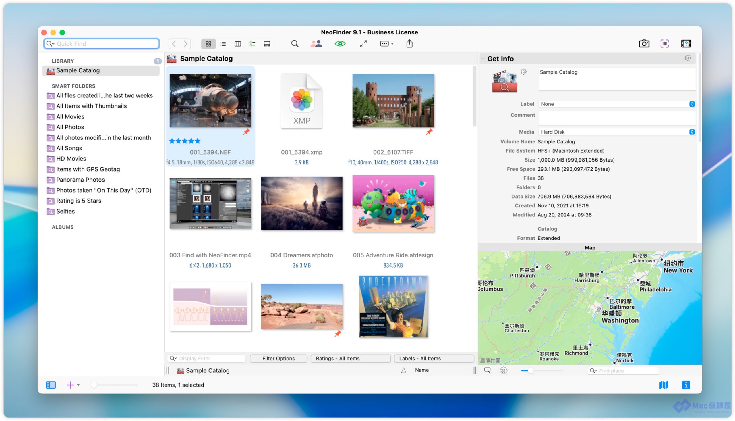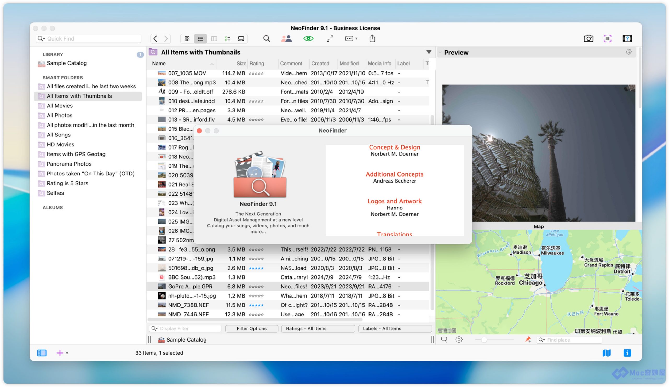- 元数据管理:NeoFinder 读取各种元数据,包括缩略图和 XMP 文件信息,以提供有关文件的完整信息。